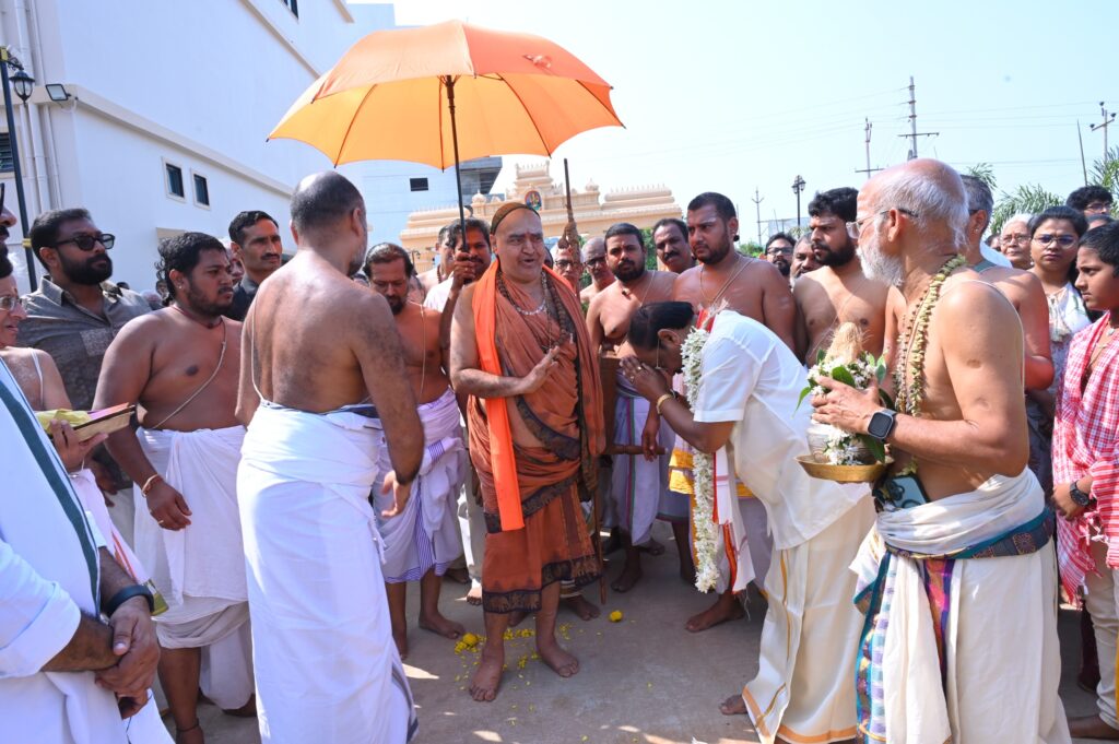 తాడేపల్లి సమీపంలోని నూతన ఇస్కాన్ (ISCON) ఆలయం వద్ద స్వామి వారిని కలిసిన దేవస్థానం ప్రతినిధులు, ఇంద్రకీలాద్రి ఆలయాన్ని సందర్శించి భక్తులకు సందేశం అందించవలసిందిగా ఆహ్వానించారు. ఈ ఆహ్వానాన్ని మన్నించిన శ్రీ స్వామి వారు, ఒకటి రెండు రోజుల్లో దుర్గా మల్లేశ్వర స్వామి వారి దేవస్థానానికి విచ్చేసే అవకాశముందని ఆలయ అధికారులు తెలిపారు.