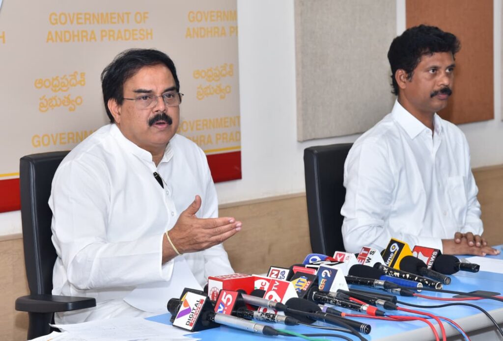 పాత్రికేయుల సమావేశంలో సివిల్ సప్లైస్ కార్పొరేషన్ వైస్ చైర్మన్ మరియు ఎండీ ఎస్. ఢిల్లీ రావు ఉన్నారు.