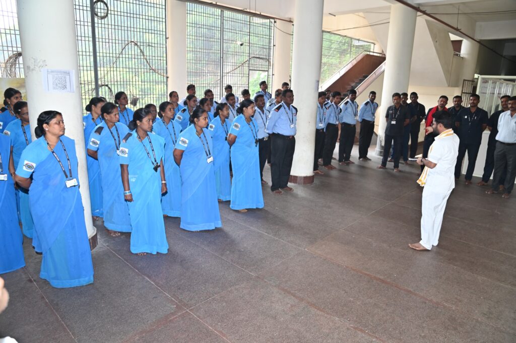 విజయవాడలోని ప్రసిద్ధ ఇంద్రకీలాద్రి దుర్గా మల్లేశ్వర స్వామి దేవస్థానంలో భక్తుల రద్దీని దృష్టిలో ఉంచుకుని పటిష్టమైన భద్రతా చర్యలు చేపట్టాలని దేవస్థానం కార్యనిర్వాహక అధికారి (ఈఓ) మరియు స్పెషల్ గ్రేడ్ డిప్యూటీ కలెక్టర్ శ్రీ వి.కె. శీనా నాయక్ ఆదేశాలు జారీ చేశారు. ఈ మేరకు ఈరోజు మహామండపం నాలుగవ అంతస్తులో భద్రతా సిబ్బందితో ప్రత్యేక సమావేశం నిర్వహించారు.